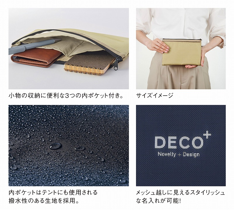 ポーチをまとめたカテゴリ。無地のポーチも多数登録されておりますので、名入れを行って記念品やノベルティなどにお使いいただけるようになっております。