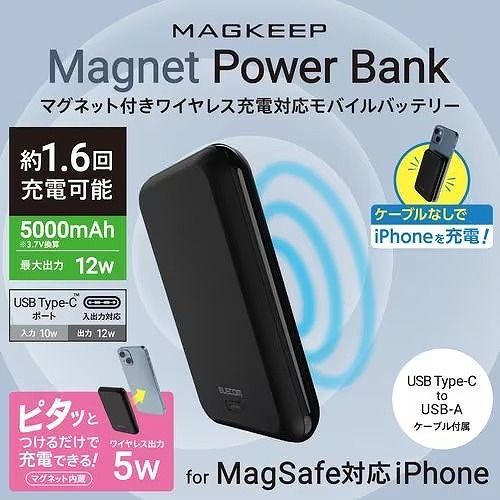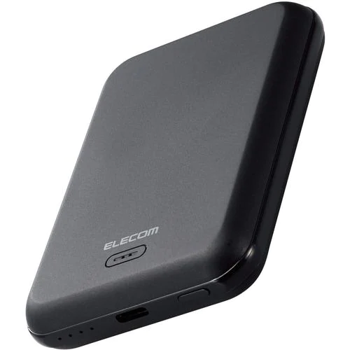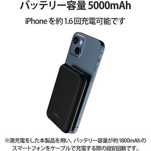 エレコム DE-C40-5000BK モバイルバッテリー 5000mAh 12W 入出力(TypeC×1) ワイヤレス充電 MagSafe対応 ブラック