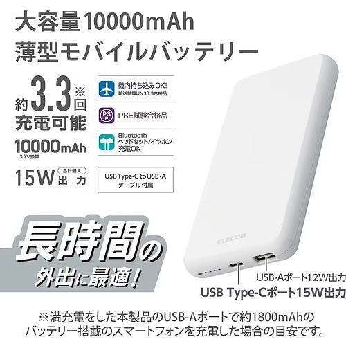 ※満充電をした本製品のUSB-Aポートで約1800mAhのバッテリー搭載のスマートフォンを充電した場合の目安です。