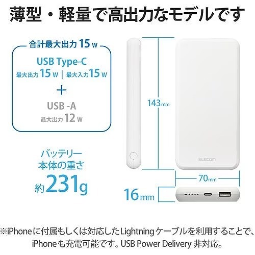 コネクタ形状(電源出力側):USBType-C(TM)(USB-C(TM))ポート×1、USB-Aポート×1