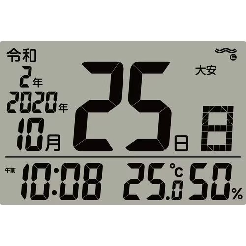 画面表示:六曜表示・カレンダー表示・和暦と西暦表示・温度・湿度表示