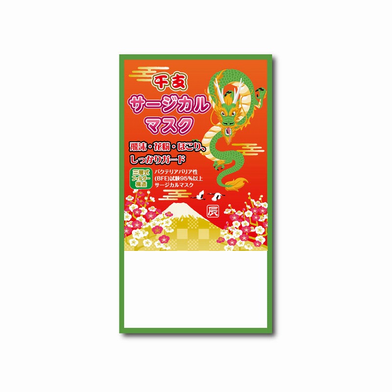 干支柄パッケージ入りの不織布マスクです。前面に名刺ポケットがあり、名刺やショップカード、クーポン、チラシなどを入れられます。※マスクは感染を完全に防ぐものではありません。