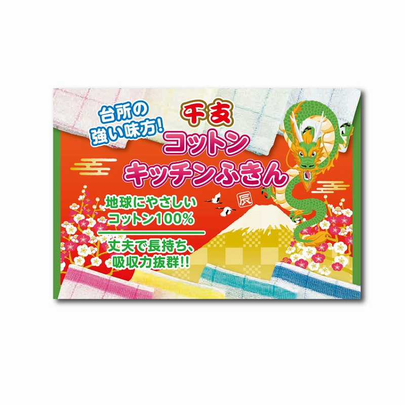 コットン100%で、丈夫で長持ちな吸収力抜群のふきんです。赤、緑、黄、桃の4色からアソートです。