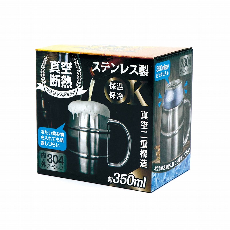 ”ロゴ、名入れ・ノベルティ、物販に!” 『真空断熱ステンレスジョッキ 樽型350ml』