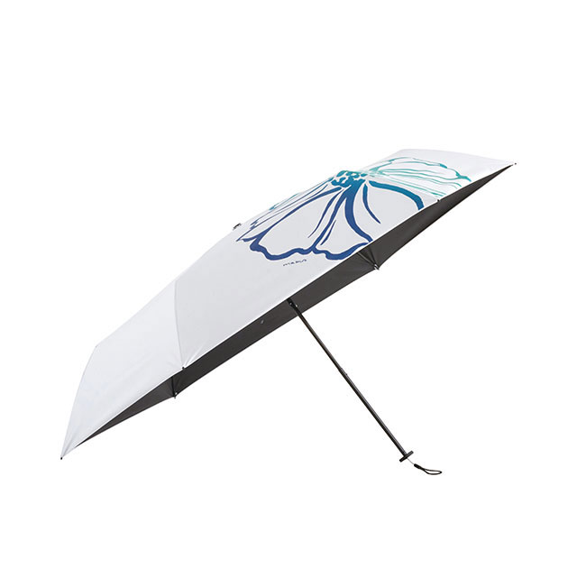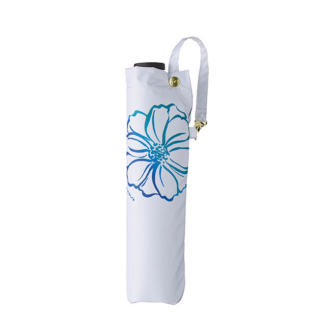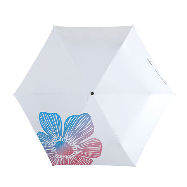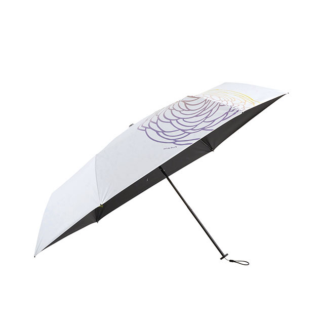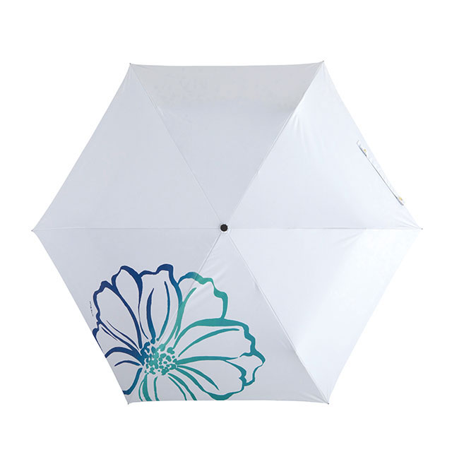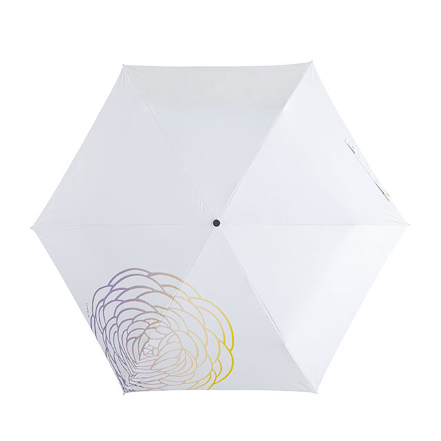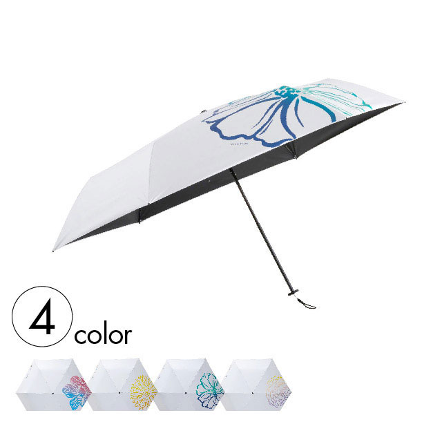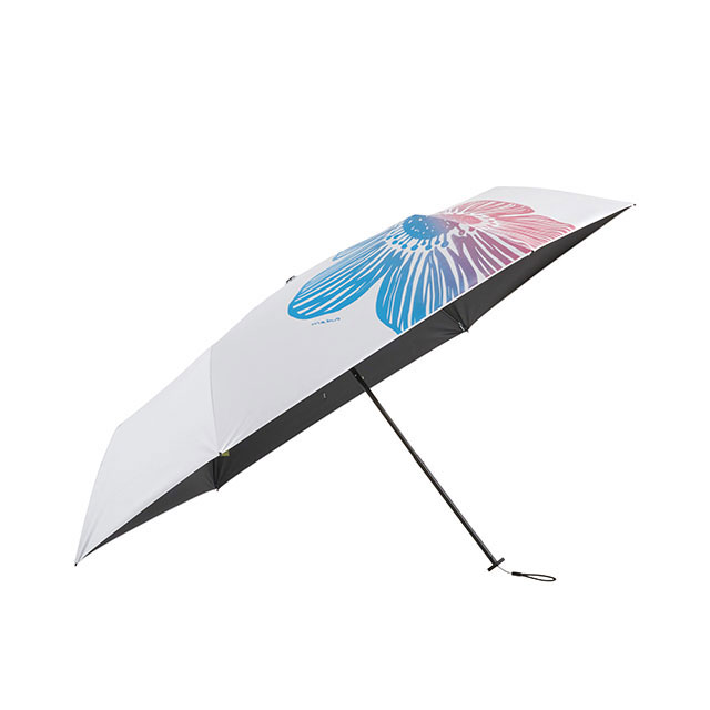 日差しと紫外線を限りなくカットする一級遮光です。グラデーションで描かれたお花のデザインです。内側の黒色は地面からの乱反射を防ぎ、眩しさのカットにもつながります。