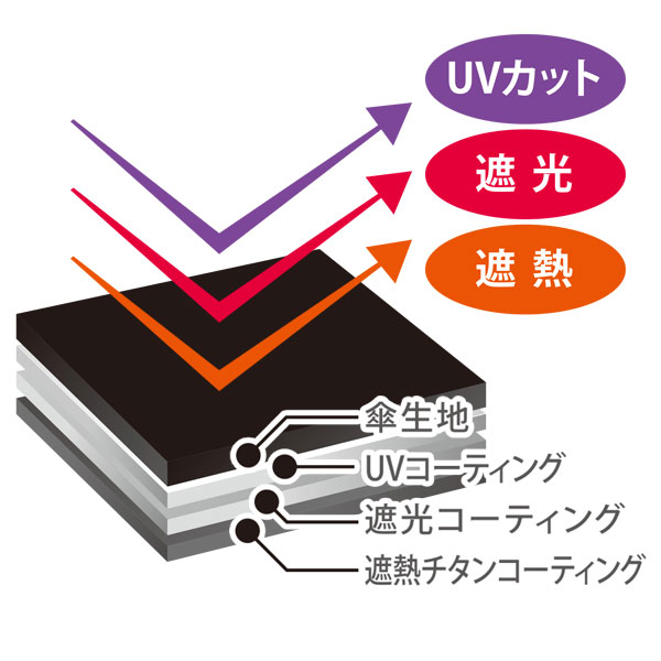生地:ポリエステル100%親骨:グラスファイバー中棒:アルミ手元: ABS樹脂