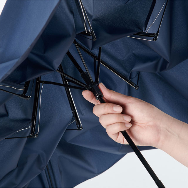 軽さはもちろん、開いたサイズも長傘と同程度で使う時の快適さも追求しました。突然の雨でも安心の荷物も濡れにくいサイズ感で、最軽量(※)に仕上げています。