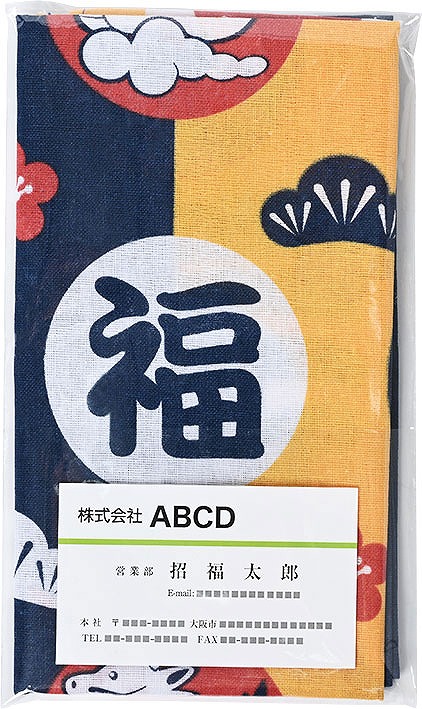 名刺ポケット付OP袋に入った、ご挨拶にぴったりのノベルティです。4辺縫製。