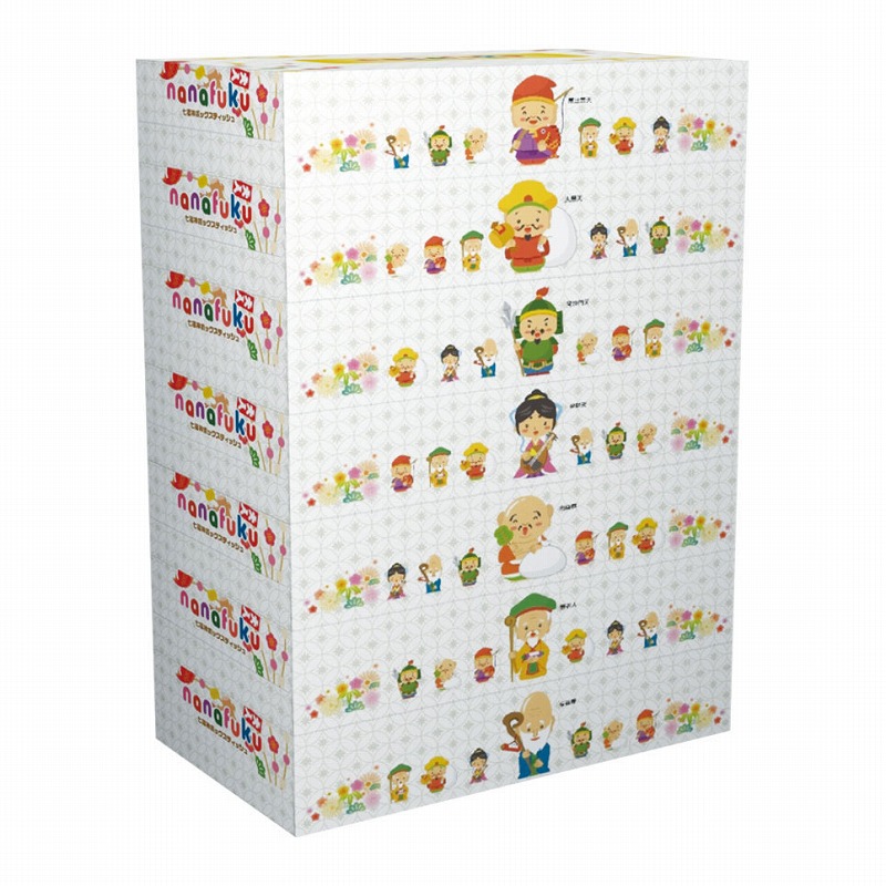可愛い七福神のイラストが楽しいBOXティッシュの7個セットです。●1000円の運賃を申し受けます。(北海道・沖縄・離島は別途)
