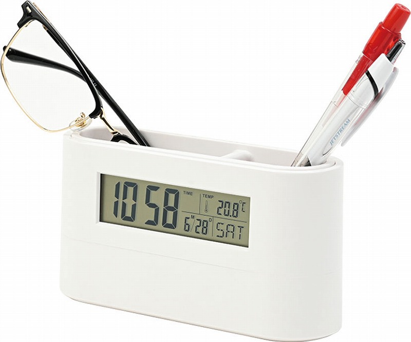 ”福利厚生 周年 卒業 記念品” 『仕切り付ペンスタンド&デジタルクロック』