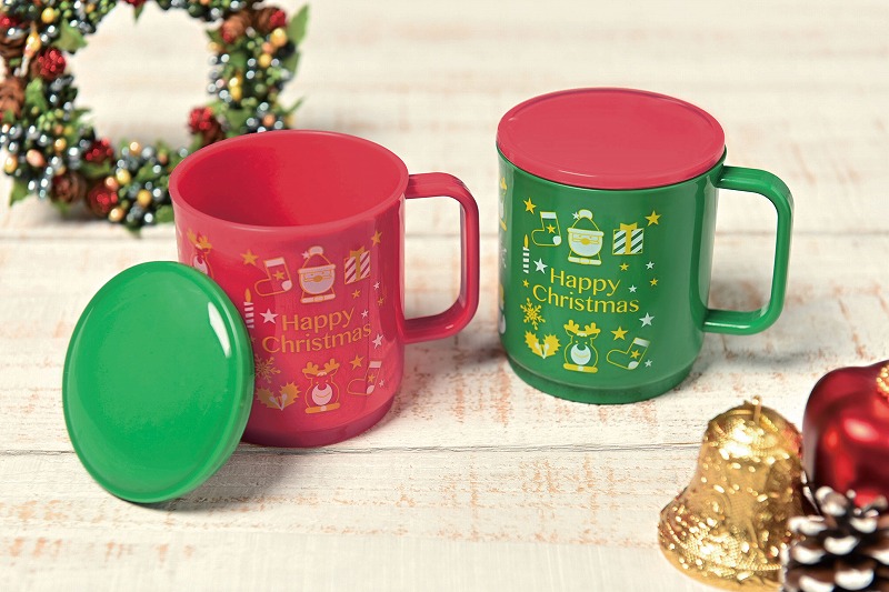 軽くて割れにくいポリプロピレン製のフタ付マグカップです。