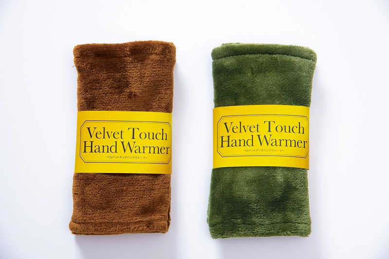 ベルベットタッチの肌触りが心地よいすてきな色合いのハンドウォーマーです。