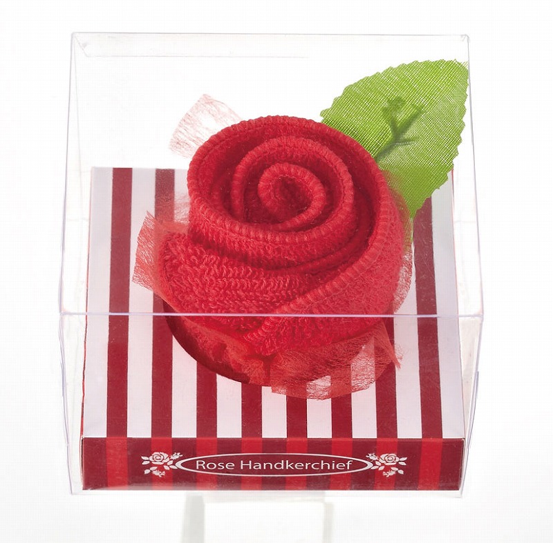 タオルチーフを薔薇の花の形にアレンジしたおしゃれなプレミアムです。
