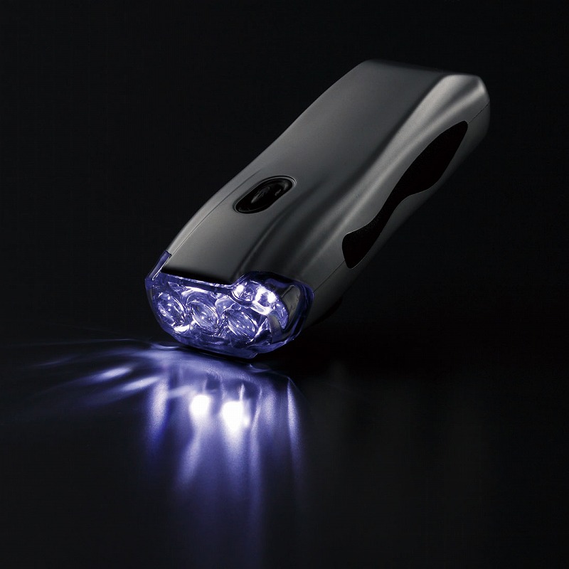 ハンドルを回すだけで蓄電OK!電池不要ですから、緊急時災害時に威力を発揮するLEDライトです。