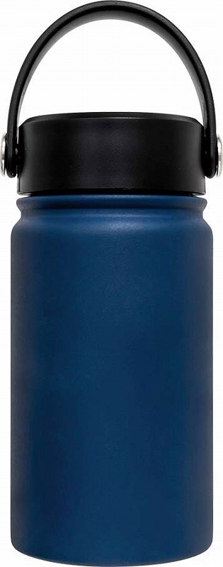 持ち運びに便利なハンドル付きのステンレスボトル。
