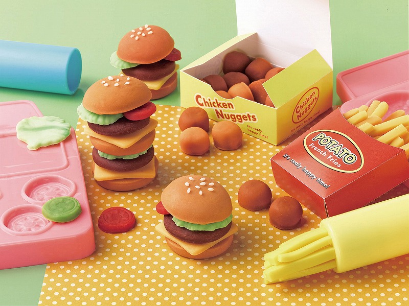 内容品:小麦粘土4色(白・青・赤・黄)/押し型/ナゲットケース/ねんどローラー/ポテトおしだし器/保存袋/ポテトケース