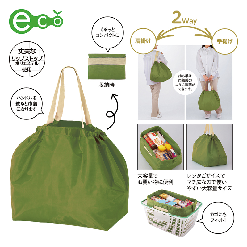 セルトナ・ポータブルラージ2WAY巾着トート(カーキ)