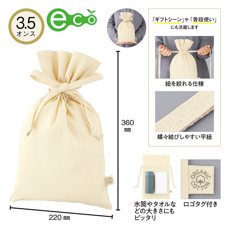 ”販促品” 『3.5オンス オーガニックコットンギフト巾着(M)』