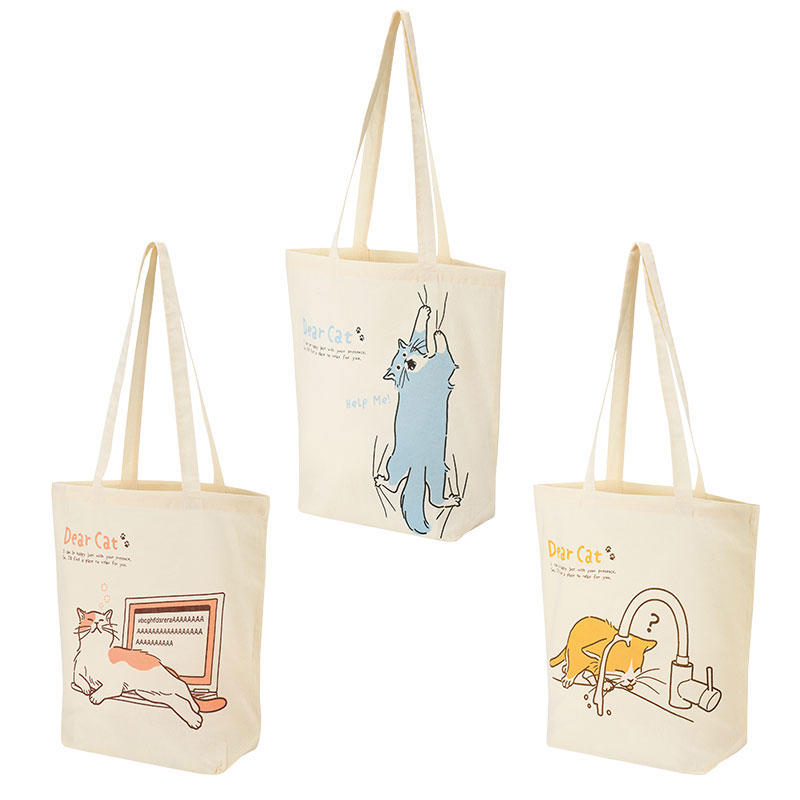 猫好きでなくても、思わずくすっとなる猫の「あるある」をバッグにしました。笑いと癒しをお客さまにお届けできます