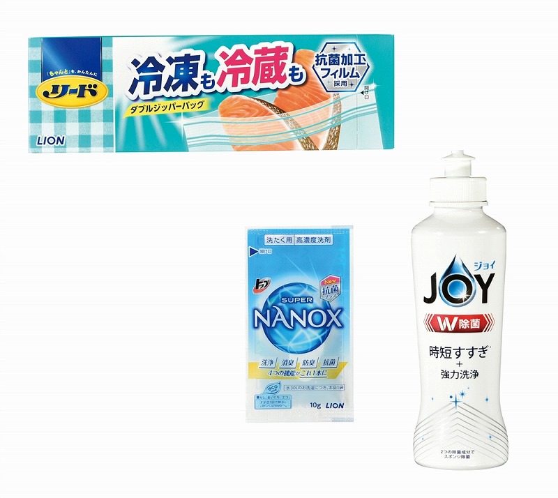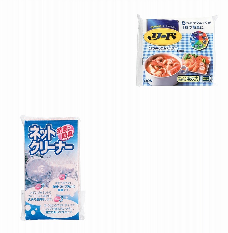 [セット内容] ・P&G 除菌ジョイコンパクト170ml(さわやか微香)×1 ・ライオン リード冷凍も冷蔵も新鮮保存バッグM3枚×1 ・ライオン リードクッキングペーパー小4枚×1 ・ライオン トップスーパーNANOX10g×1 ・花王 バブゆずの香り×1 ・ネットクリーナー×1
