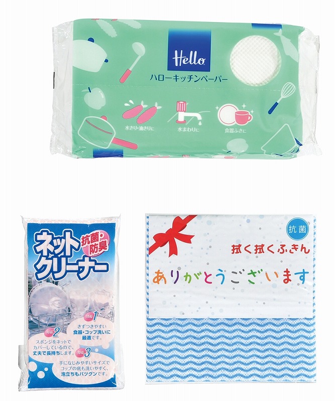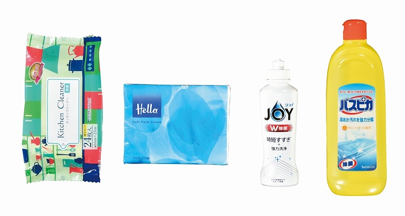 [セット内容] ・P&G 除菌ジョイコンパクト170ml(さわやか微香)×1 ・バスクリン バスピカ500ml×1 ・ハローキッチンペーパー70枚×1 ・ハローコンパクトソフトパックティッシュ150W×1 ・除菌キッチンクリーナー24枚×1 ・抗菌拭く拭くふきん1枚×1 ・ネットクリーナー×1