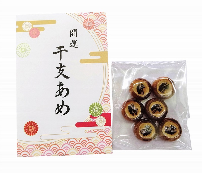 「登り龍にあやかり景気が良くなるように」と、金太郎飴の技法で飴の中に龍を描きました。味は沖縄産の黒糖を使用し、黒糖の風味豊かなおいしい飴に仕上げました。