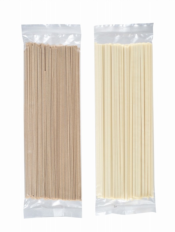 年越しそば、年明けうどんとしても、うどんとそばの定番食べ比べセットとしても。老若男女に人気の麺セットです。香川県公式キャラクター・うどん県観光課係長「うどん健」のマーク入り。幸福感満載の明るいパッケージも魅力の一つです。