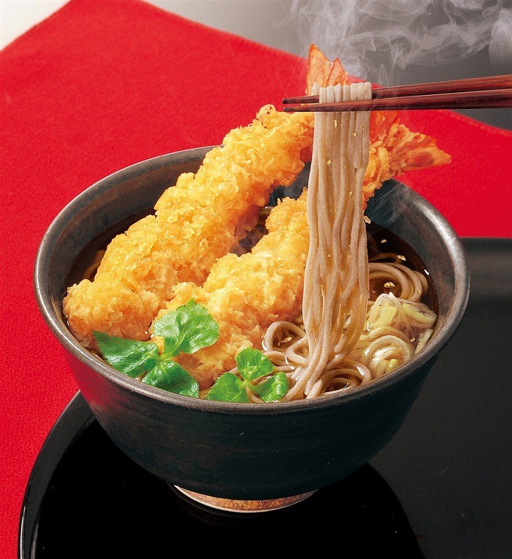 金箔を配合した華やかなつゆをセットにし、高級感をもたせました。縁起の良いおそばをご賞味ください。