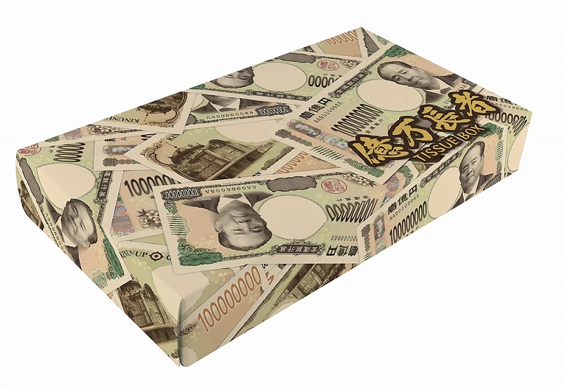 肖像が渋沢栄一の壱億円札(笑)のボックスティッシュです。中身は白無地のティッシュです。(40組枚入)バラエティグッズとして、おもしろ系景品としてお使いください。