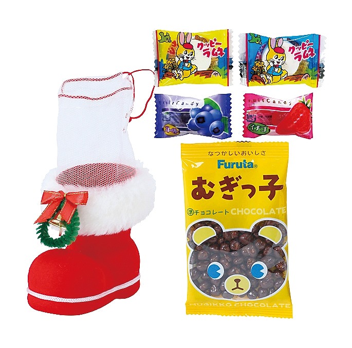 [キット内容] [A賞]サンタブーツBIGサイズ(お菓子7個入)・・・1本 [B賞]サンタブーツLサイズ(お菓子6個入)・・・2本 [C賞]サンタブーツSサイズ(お菓子5個入)・・・3本 [D賞]サンタブーツミニサイズ(お菓子5個入)・・・4本 [E賞]サンタブーツプチサイズ(お菓子1個入)・・・20本 [付属] 抽選用くじ×30、クリスマス抽選箱×1、くじ明細書×1、告知用A3ポスター×1 ※賞品の内容・デザインは画像と異なる場合があります。あらかじめご了承ください。