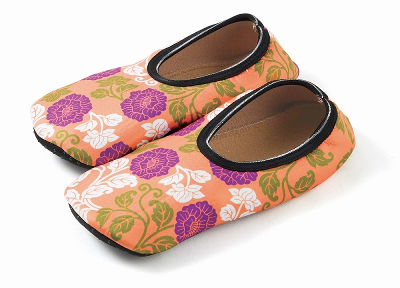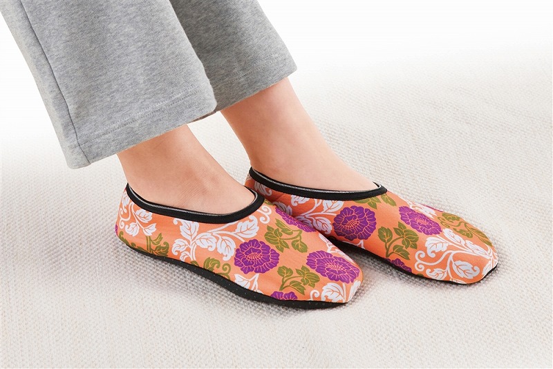 富貴の象徴や美人を形容する花とされてきたあでやかな牡丹柄と、あったか裏ボア仕様で冬のおうち時間も気分が上がる!底面にはすべり止め付き。 ※製造工程上、柄の出方は写真とは異なります。