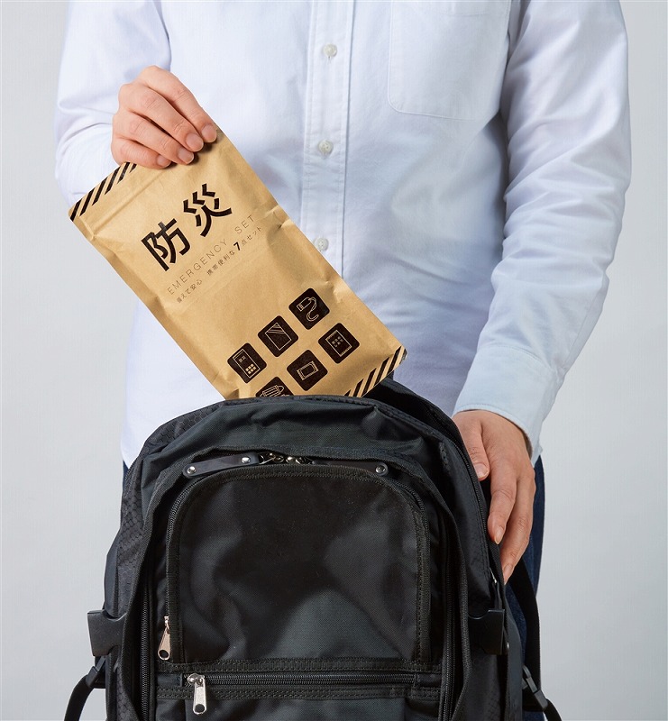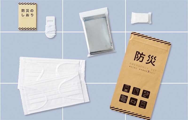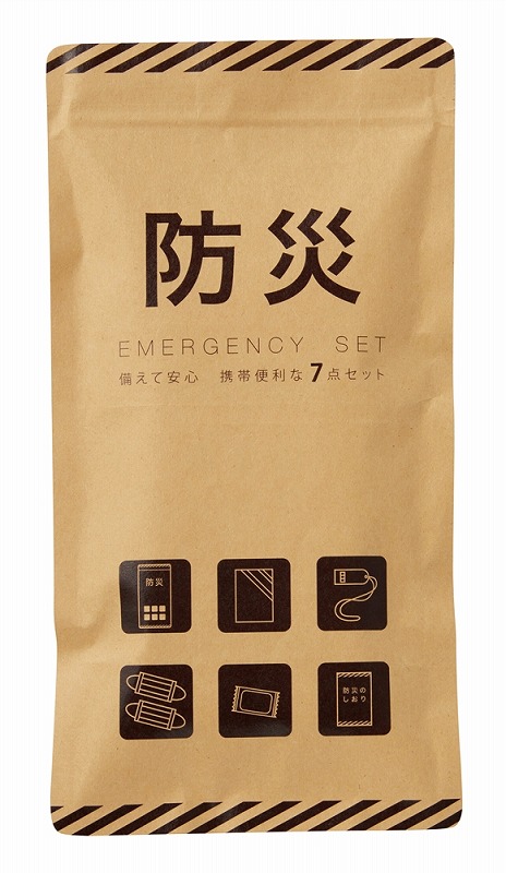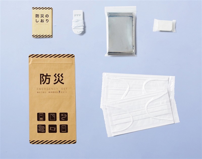 [セット内容] 防災ポーチ(ジッパータイプ)・アルミシート・フラットホイッスル・マスク×2・圧縮タオル・防災のしおり