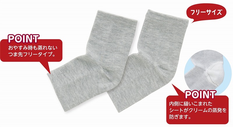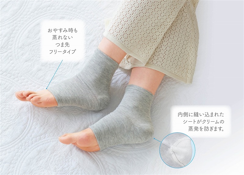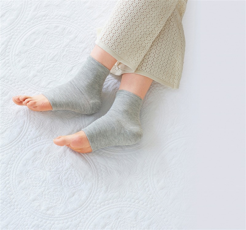 おやすみ時も蒸れないつま先フリータイプ。抗菌防臭加工で清潔にお使いいただけます。