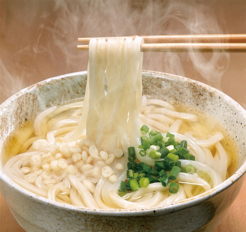 麺は生地を折りたたむ手打ちの技法を応用し、包丁切りで仕上げました。もっちりとした歯応えと旨みが自慢です。つゆは地元香川の名産地として名高い伊吹漁協産の「伊吹のいりこのだし」をベースに、すっきりとした味わいの「かけうどん」、鰹だしとのバランスの「釜揚げうどん」、コクとまろやかな味わいの「ぶっかけうどん」、和風ベースにピリッとスパイスの効いた「カレーうどん」、うどん県讃岐うどんならではの人気メニューの競演が楽しめます。