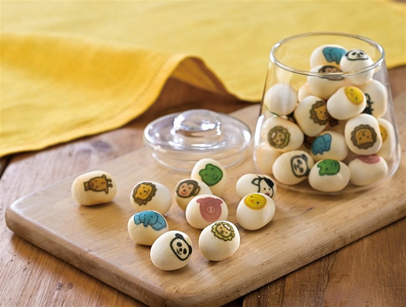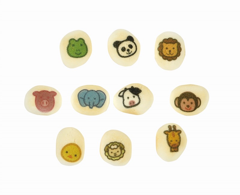 かわいくって食べられない!?大粒のたまごボーロに10種類のどうぶつをプリントしました