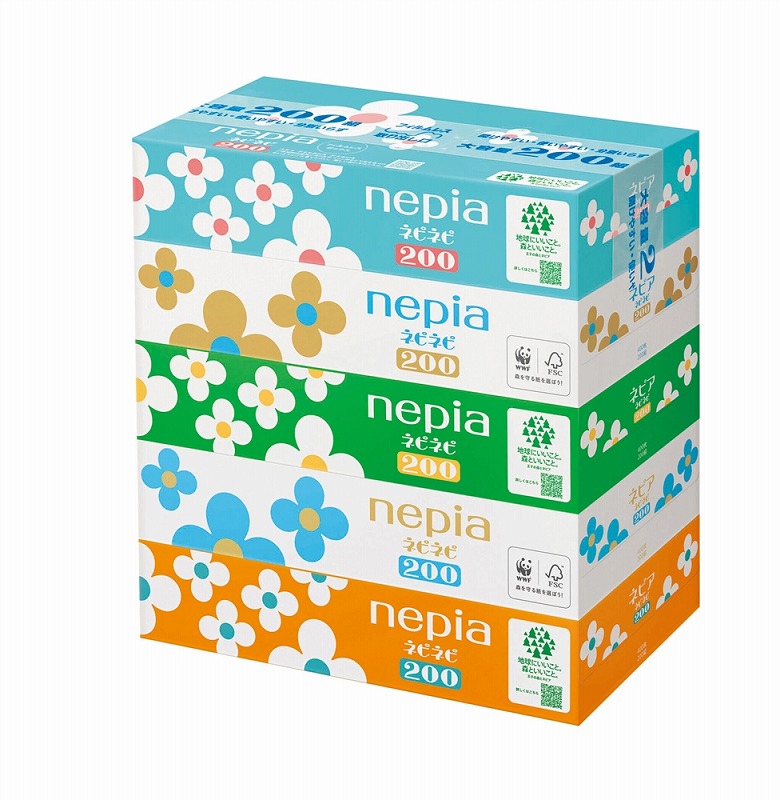 ・新開発 ネピア独自の 「フィルムレスの取り出し口」 ・フレッシュパルプ 100%。 FSC認証紙を採用。 ・たっぷり使える 200W。 ご家庭内の様ーなシーンでご使用いただけます。 ・「新タタミジョーズ」 を採用。