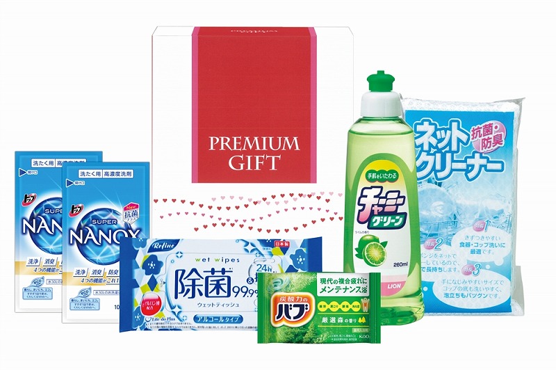 [セット内容] ・ライオン チャーミーグリーン260ml×1 ・ライオン トップスーパーNANOX10g×2 ・花王 バブ(森の香り)×1 ・リファイン アルコール除菌おでかけウェットティッシュ10枚×1 ・ネットクリーナー×1