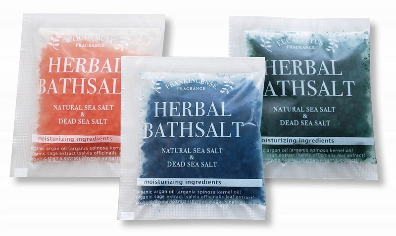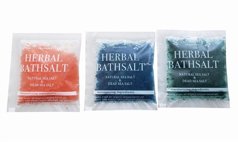 天然塩&死海の塩をベースに オーガニック認証保湿成分3種配合(アルガンオイル、セージエキス、タイムエキス) ・3種類の香りのアソートです。(ユーカリの香り/フランキンセンスの香り/ウッディームスクの香り)