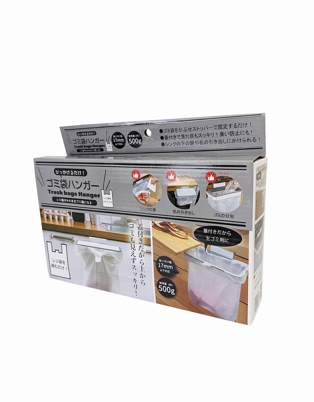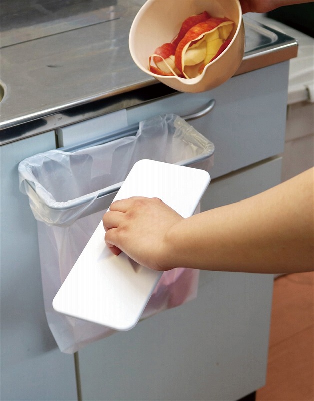 シンクの扉や机の引き出しに引っ掛けるだけ!レジ袋を挟んで、そのまま捨てられる!レジ袋がそのままゴミ箱になる!キッチンでもオフィスでも活躍!蓋付きだから上からゴミも見えずスッキリ!