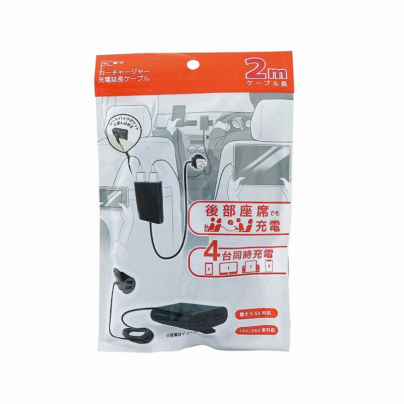 スマホなどを最大4台同時充電ができます。 ケーブル長約2m。 最大5.5A対応。 12V/24V車対応。