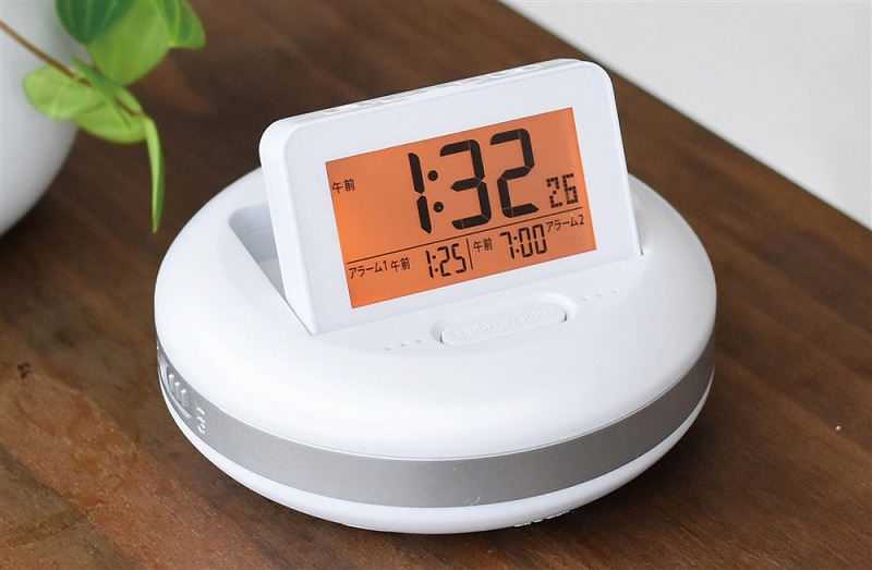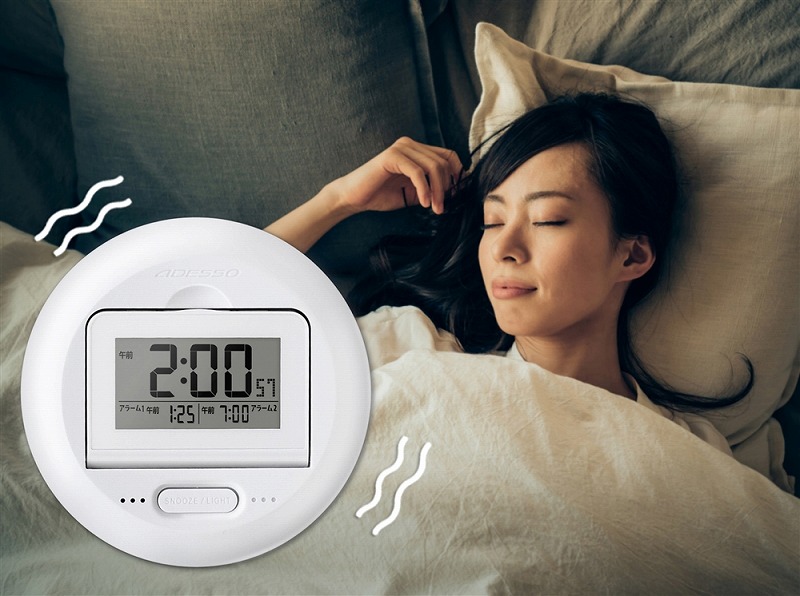 枕の下に入れて使います。夜勤や仮眠などで周りの人を起こさずに起きたい方や、耳が不自由な方にも。液晶部分を立てれば置時計としても使えます。