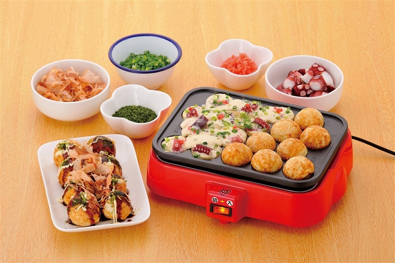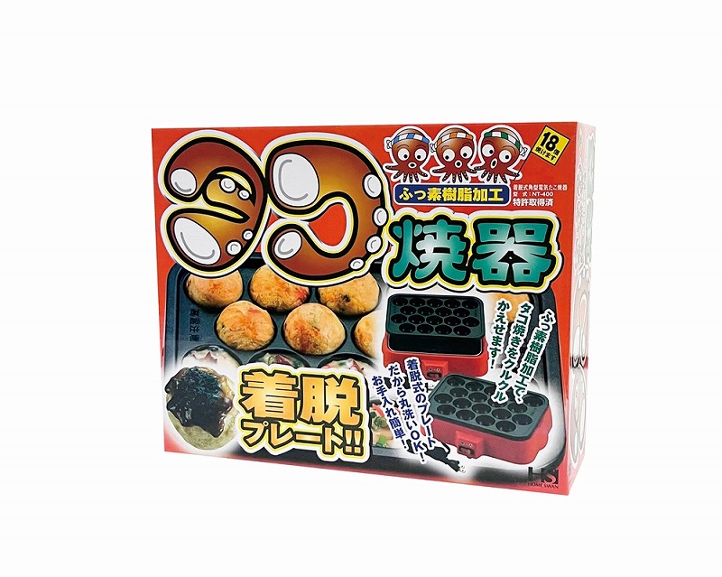 プレートは着脱式で丸洗いOK 穴径40mmの大きなたこ焼きが出来ます ON、OFFが分かるパイロットランプスイッチ