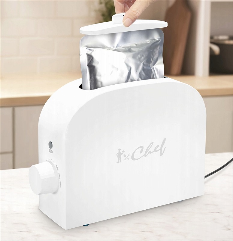 レトルトパウチ食品を入れてダイヤルを回すだけ!コンロ・レンジを塞がないので、ご飯や麺等を同時に用意できる。クリップ付きフタで取り出しも楽ー。