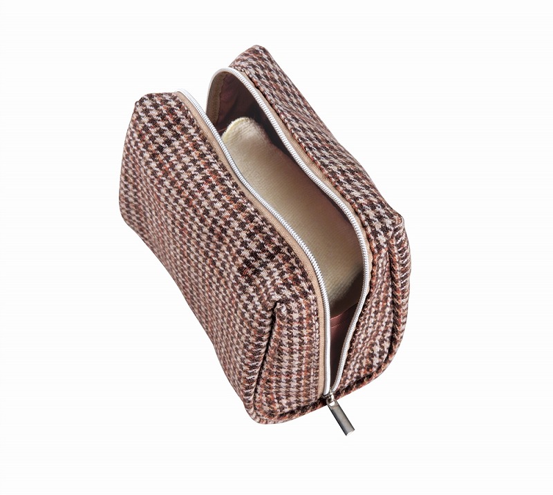 ファスナーを開けておいても、サイドに施された玉縁加工でしっかり自立。