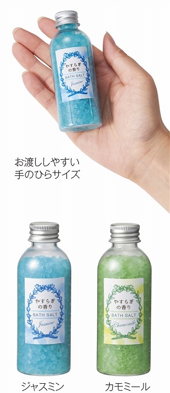 約20Lのお湯に本品を半分ほど入れてお楽しみください。ディスプレイしやすいボトルタイプとお渡ししやすい手のひらサイズも魅力です。