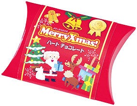 クリスマス柄のパッケージに入った可愛い ハート型のチョコレートです。 コンパクトサイズでプチギフトに最適です。