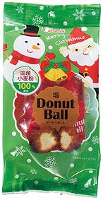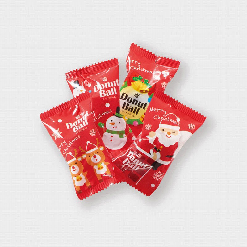 クリスマスパッケージになった個包装の ドーナツボール、塩味で美味しいです。