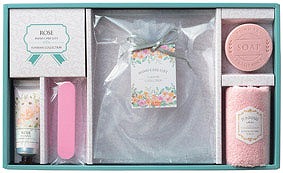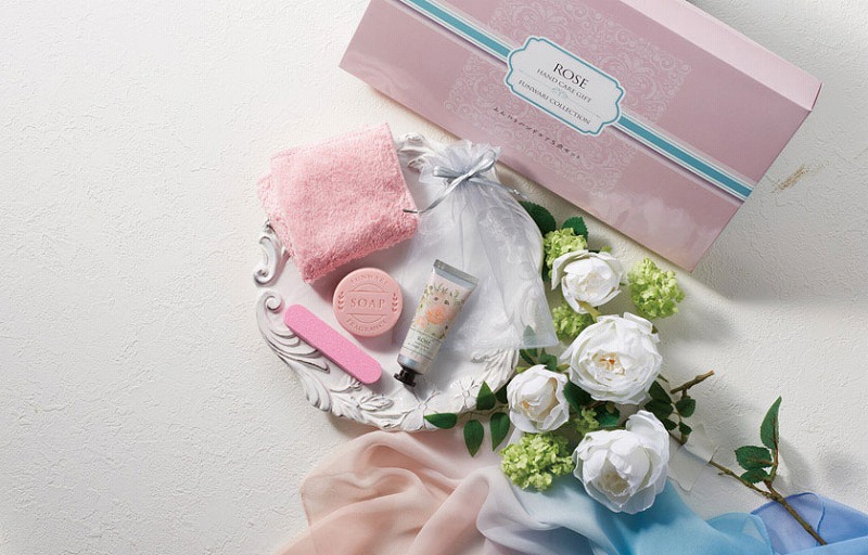 セット内容/ハンカチタオル・巾着・石鹸40g・ネイルファイル・ハンドクリーム25ml