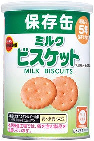 濃縮乳で練って焼きあげた、 素朴な味わいの缶入りミルクビスケットです。 非常食だけでなくおやつや携行食に最適です。