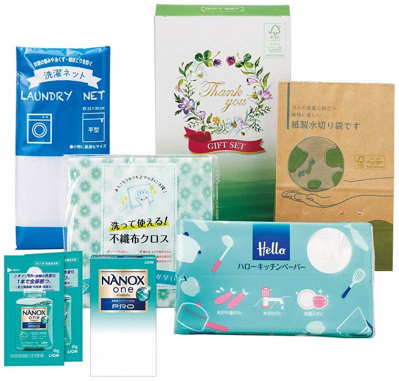 セット内容/ナノックス3包・ハローキッチンペーパー70枚・ランドリーネット・不織布クロス・紙製水切り袋
